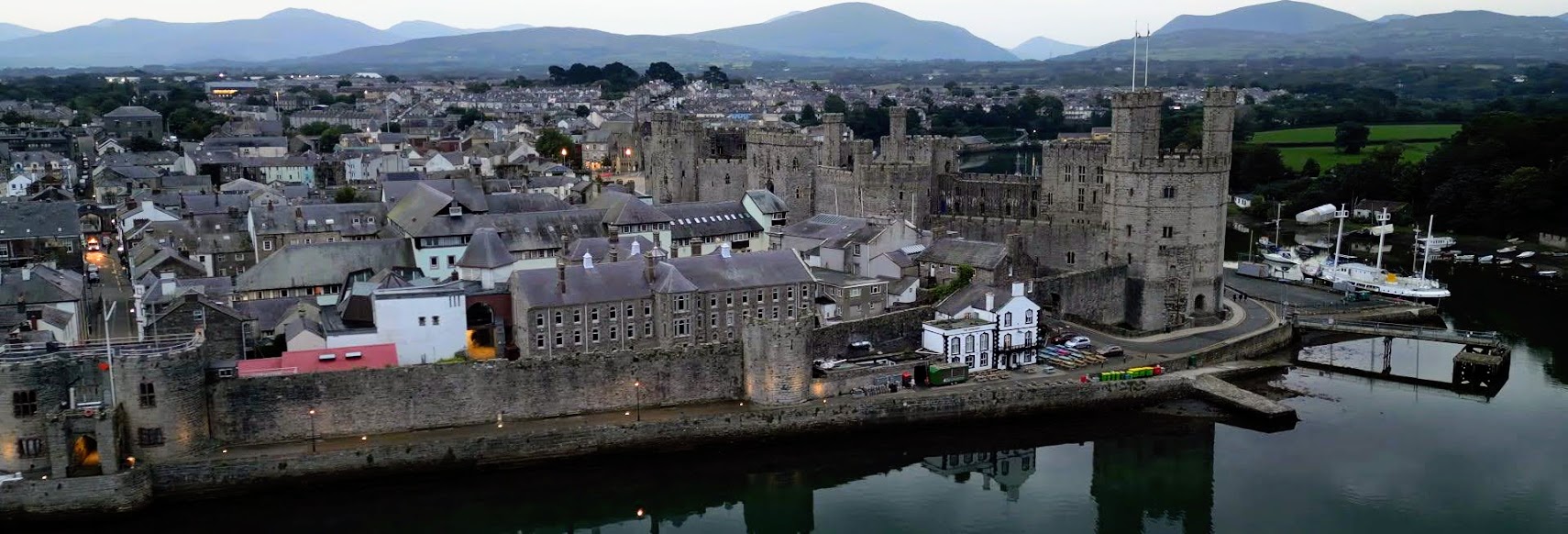 One king bed (US size queen) with sink – view of Caernarfon Castle battlements