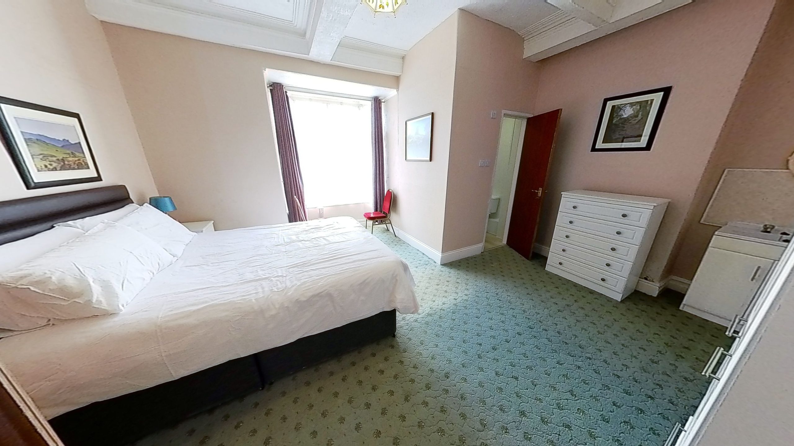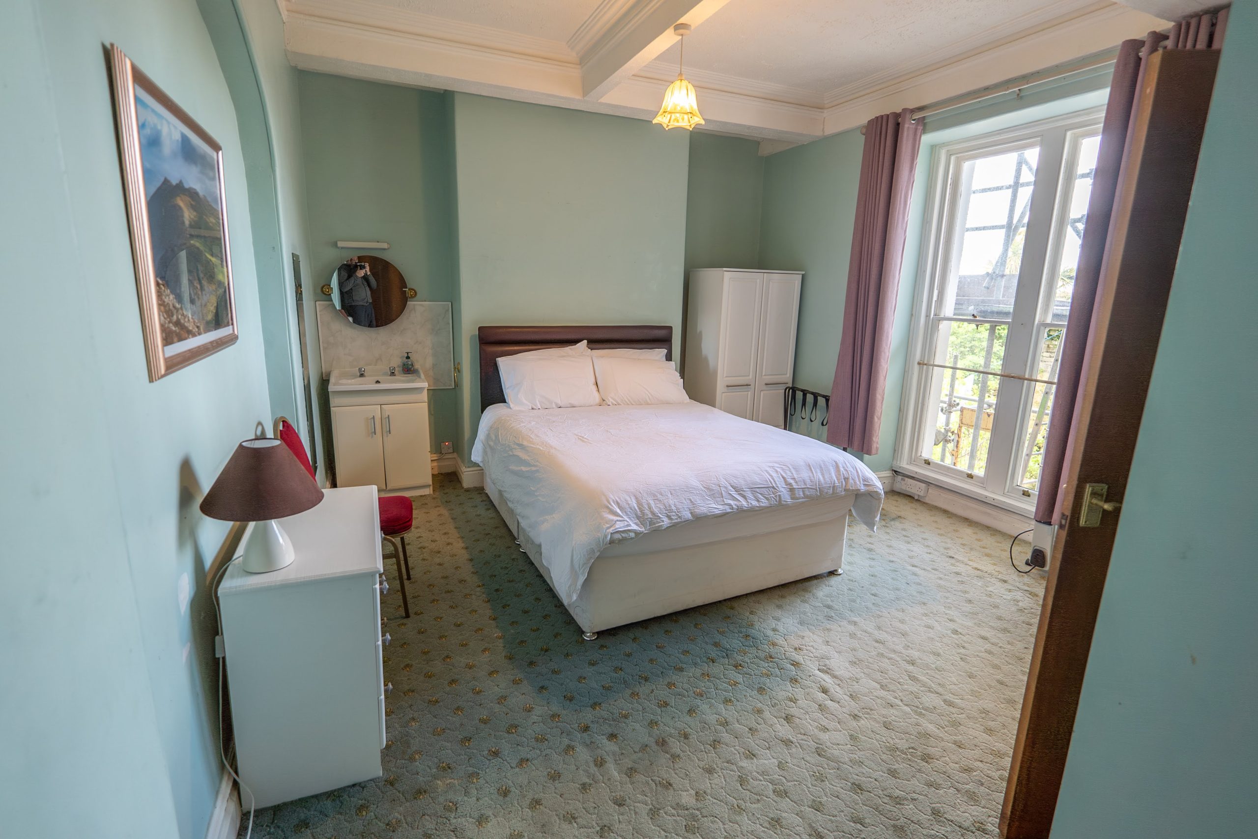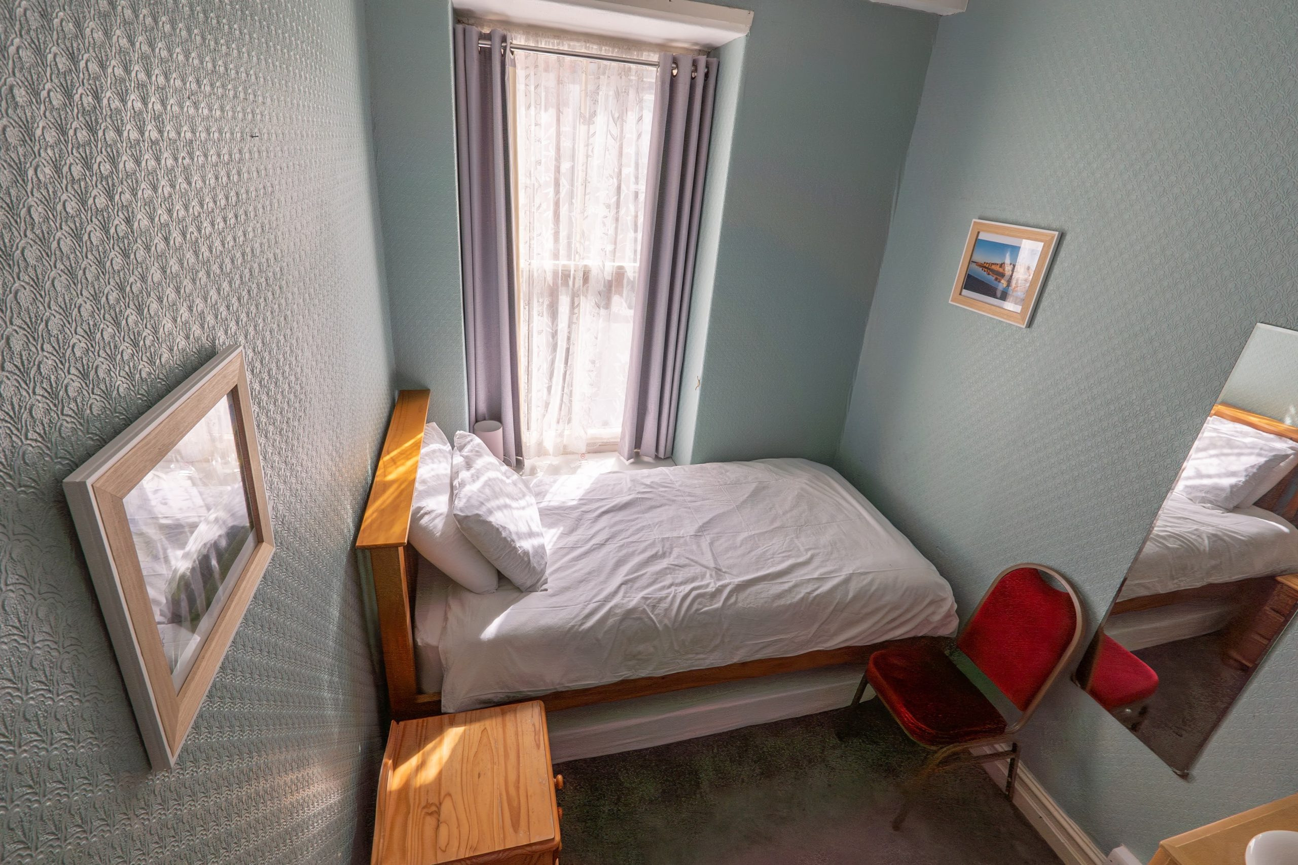 One king bed (US size queen) with bay windows overlooking Church Street (Ystrad Eglwys) – Room includes ensuite bathroom